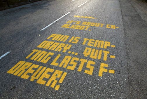 And to cheer him on, Livestrong and Nike teamed up with DeepLocal and StandardRobot to create this robot that paints messages on the Tour de France path.